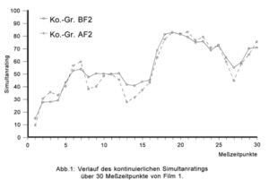 - differenzierte Analyse der Reaktionen auf einzelne Phasen oder Szenen in einer Reizsituation, z.B. während eines gezeigten Films, durch Zuordnung des zeitlichen Ablaufs der Reizsituation zum zeitlichen Ablaufs des Simultanratings.