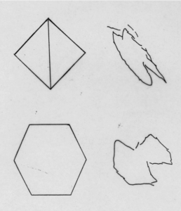 Die Abbildung zeigt das Problem eines Patienten mit visu-motorischen Störungen nach einer Hirnschädigung. Der Patient ist nicht in der Lage, Auge und Hand zu koordinieren. Auch diese Patientengruppe kann durch das sensu-motorische Training den sicheren Ablauf von Bewegungen erlernen.
