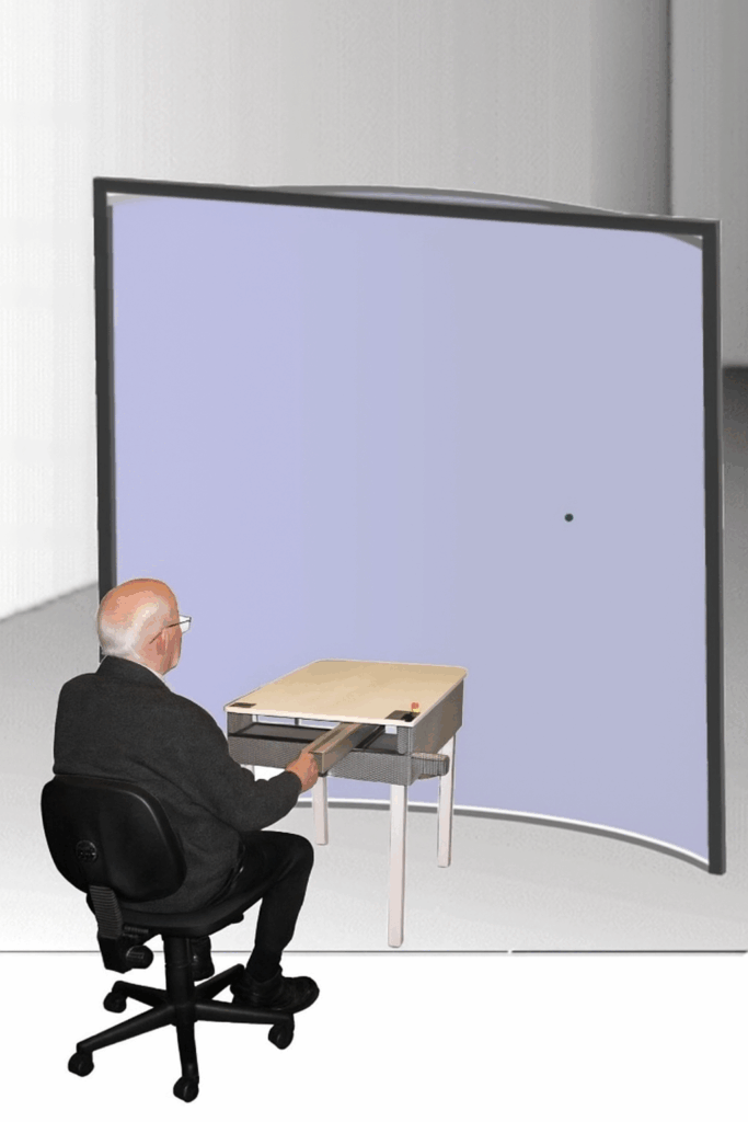 Ein wesentliches Merkmal ist die multimodale Rückkopplung: Bewegungen werden nicht nur propriozeptiv erlebt, sondern zugleich visuell gespiegelt. Auf eine 3 × 3 m große, leicht konkav gebogene Leinwand projiziert ein Laser Ziel- und Referenzbewegungen, die synchron auf dem Kreuztisch im verkleinerten Maßstab gefahren werden. Diese Kopplung von visueller Vorgabe und motorischer Ausführung aktiviert die kortikalen Netzwerke der sensomotorischen Integration in besonderem Maße. Neurowissenschaftliche Studien zeigen, dass gerade die simultane Kombination von motorischem Output und visueller Referenz die Plastizität in parietalen und prämotorischen Arealen sowie im supplementär-motorischen Cortex fördert und die funktionelle Rekonfiguration nach Läsionen erleichtert.