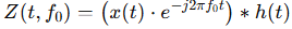 eine glättende Integralkernfunktion beschreibt, deren Konvolutionsoperator selektiv jene Energieregionen extrahiert, die in der unmittelbaren Umgebung der Zielfrequenz